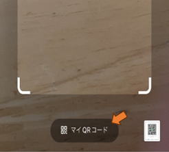 自分のQRコードを表示するため、「マイQRコード」をタップ、場所は機種によって違います。